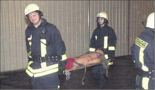 Eine der anspruchsvollsten Aufgaben war es für den unter Atemschutz operierenden Trupp, zwei Personen (die als Testpuppen auf der Erde lagen) im künstlich verrauchten Sozialtrakt zu finden. Die Sicht war dabei „gleich Null“, also mussten die Räume abgetastet werden.