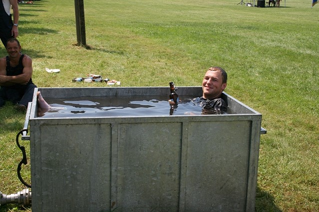 Eine willkommene Abkühlung bei den sommerlichen Temperaturen bot der Löschwasserbehälter