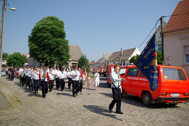 Ebenfalls am 16. September hatte die Feuerwehr Werkleitz zur Bootstaufe geladen, als frischgebackene Kreismeister machten auf dem Rückweg dort noch einen kurzen Zwischenstop.