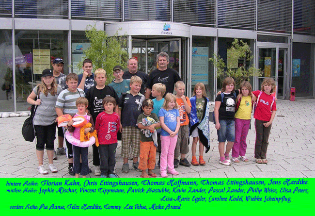 Als sich alle gestärkt hatten ging es mit individueller Freizeit der Teilnehmer bis zum Mittag weiter. Es wurde unter anderem mit dem Luftgewehr geschossen, Fußball bzw. Tischtennis gespielt oder auch geangelt. Nach dem Mittagsessen das von der Gaststätte „Zur Eiche“ zubereitet wurde sind alle Kids mit Transporter des „Sportparkes Glinde“ und der Feuerwehr nach Magdeburg zum Spaßbad „Nautica“ gefahren. Dort erlebten alle ein paar schöne Stunden. Bevor der Heimweg wieder angetreten wurde gab es Kuchen den einige Eltern gebacken hatten. Im Lager angekommen war Abendbrot. Anschließend wurde geangelt oder andere Spiele durchgeführt. Gegen 22.00 Uhr haben wir eine Nachtwanderung um das „Baggerloch“ durchgefürt. Als wir dann alle im Lager zurück waren gab es noch ein Stück Kuchen der vom Nachmittag übrig war danach war Nachtruche.
