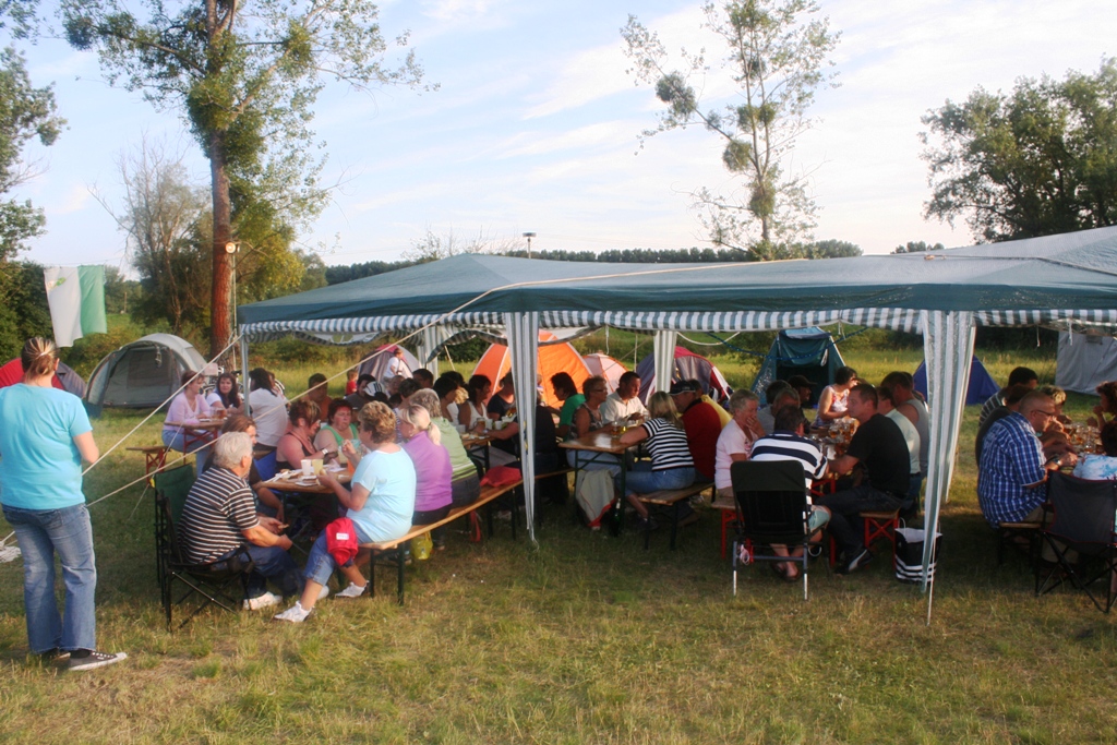 Wie immer trafen sich alle bei Jürgen Brand und Jens Hardtke in der Pömmelter Dorfstraße, um alle Utensilien zum Zelten auf die Fahrzeuge zu verladen. Danach konnte es in Richtung „Baggerloch“ losgehen. Am Zeltplatz angekommen, wurde sofort mit dem Aufbau der Zelte begonnen. Als dann endlich alles aufgebaut war, gab es die abendliche Stärkung. Nach der willkommenen Mahlzeit war Freizeit der Teilnehmer angesagt. Gegen 22.30 Uhr wurde zur Nachtruhe gebeten, die dann auch bald eingetreten war.