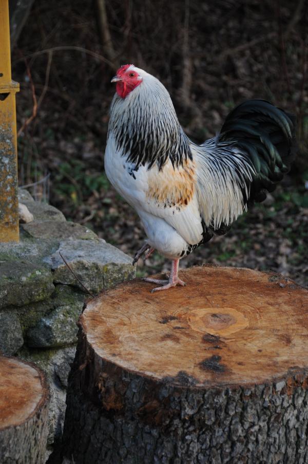 Augustusgabe-Gockel Gustav hat sich vorsichshalber ein trockenes Plätzchen gesucht.