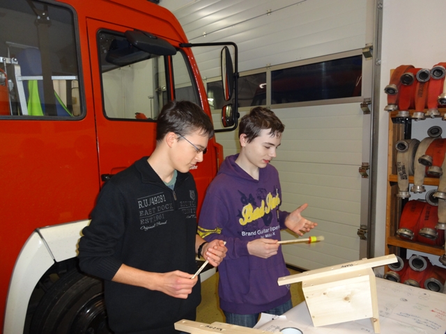 Da Jugendarbeit in der Feuerwehr nicht nur aus feuerwehrspezifischen Themen bestehen soll, kamen die Jugendwarte Andreas Lehmann und Robert Meyer auf die Idee, mit den Jugendlichen ein Nistkasten zu bauen.