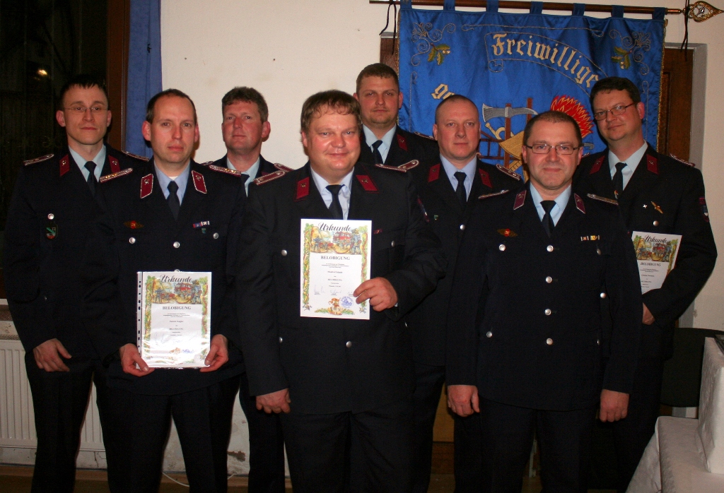 Auszeichnungen: Dienstjubiläen: - Andres Lehmann (20)- Christoph Lüdecke (20) - Manfred Zahn (30) Belobigungen: - Patrick Fengler- Thomas Meyer - Christian Nesemann - Manfred Schade Die Wehr hat 25 Kammeraden im Einsatzdiesnt, 18 passive Mitglieder, 11 Mitglieder der Alters- und Ehrenabteilung, 13 Jugendfeuerwehrmitgöieder. Die Gesammtstärke beträgt 67. |